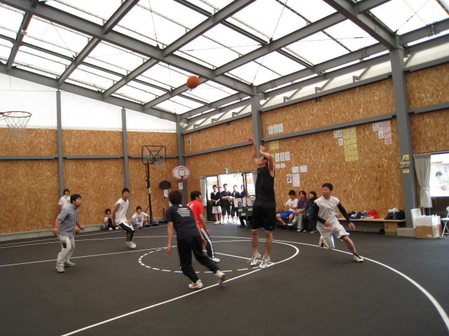 今日から第11回3on3大会の様子をお伝えしていきます。 お楽しみに・・・。 第1試合に登場したのは いわて青年○○○○、ここから1勝をめざす戦いが始まる。